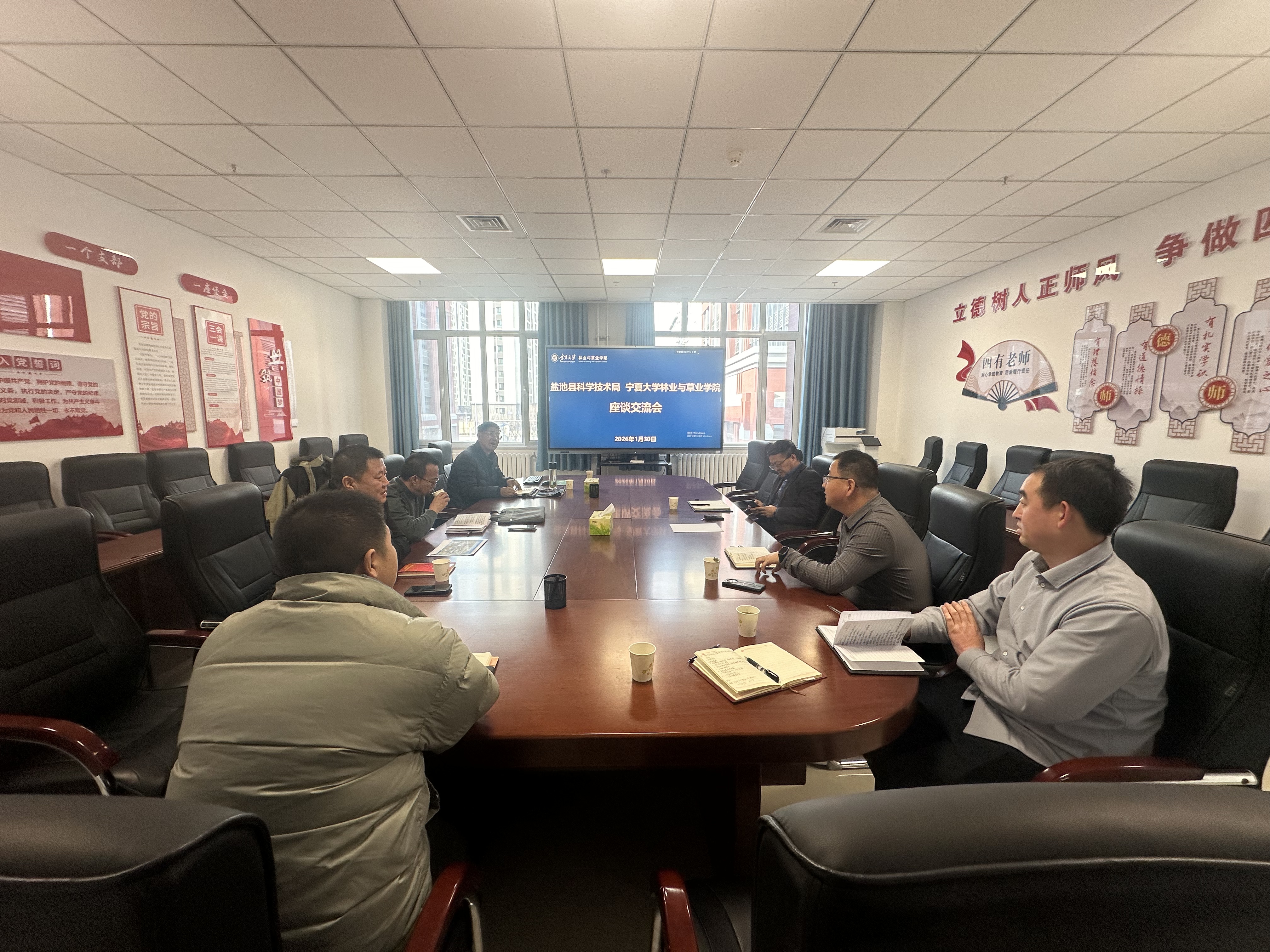 会议伊始,双方就宁夏大学盐池县四墩子试验基地共建、共管、共享以来取得的阶段性成效给予充分肯定,一致认为基地作为校地联动的重要载体,为区域农业科技研发、成果转化搭建了坚实平台,为当地产业提质增效提供了有力支撑。随后,双方聚焦基地后续发展规划,展开全方位、深层次的沟通探讨,精准对接需求、细化推进举措。