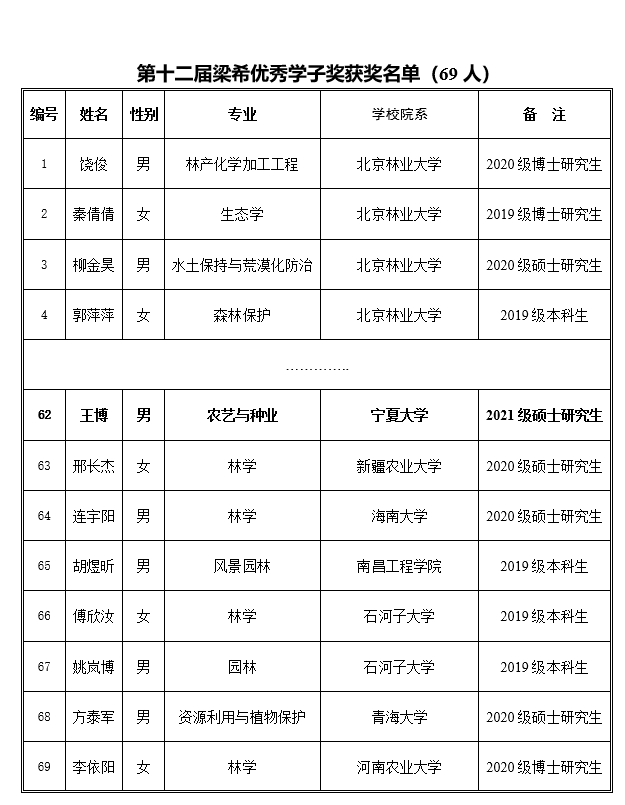2023年8月,中国林学会发布了《中国林学会关于第十二届梁希优秀学子奖评选结果的通报》,澳门威尼斯人